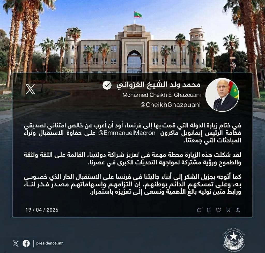 – معالي وزير الداخلية وترقية اللامركزية والتنمية المحلية، السيد محمد أحمد ولد محمد الأمين؛
