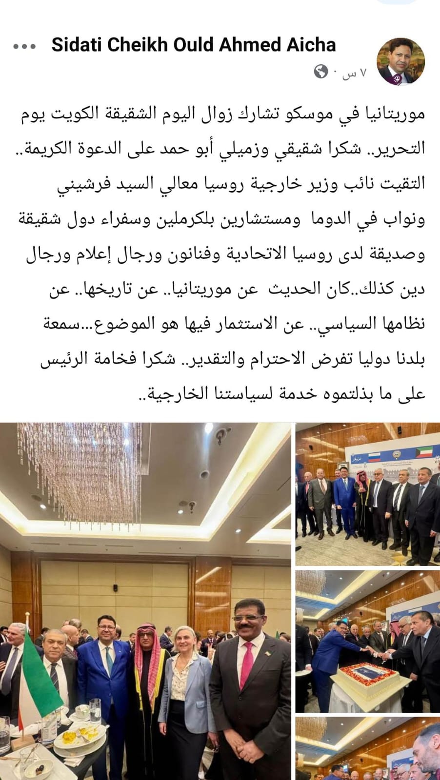 حضور دبلوماسي موريتاني بارز في احتفالية الاعياد الوطنية لدولة الكويت بالعاصمة موسكو